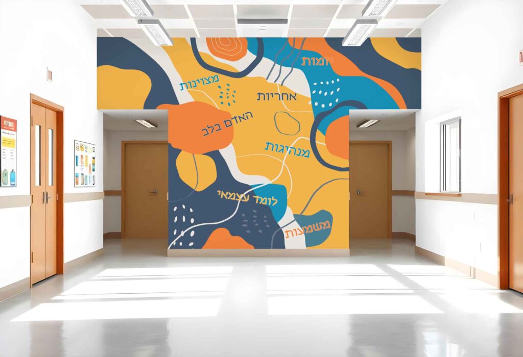 עיצוב קירות במוסדות אינו עוד רק צביעה או הדבקת פוסטרים. הוא הפך לכלי אסטרטגי המשפיע